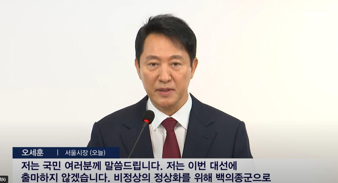 오세훈 서울 시장이 사람들의 예상을 뒤집고 오늘 대선 불출마 선언을 했습니다.