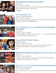 전체 글506 유튜브 뮤직 글로벌 톱 100 차트 분석: 싸이, 방탄소년단, 트와이스, 이루마 Korean Artists in YouTube Music Global Top 100: Psy, Bangtan, Twice, Yiruma 유튜브에서는 2016년 2월부터 유튜브 음악 글로벌 100 차트를 공개하기 시작했는데요. 주간 단위로 가장 조회수가 많은 노래, 비디오, 그리고 아티스트를 각각 1위 부터 100위까지 보여줍니다. 트랙(Track) 차트는 어떤 특정 노래의 모든 비디오들의 조회수를 합해서 순위를 매긴 것입니다. 비디오(Video) 차트는 특정 비디오 1개의 조회수 순위입니다. 아티스트(Artist) 차트는 아티스트 별 모든 뮤직 비디오들의 조회수 합계 순위입니다. 가장 최근 차트는 2016년 5월 6일부터 12일까지인데요. 유튜브 뮤직 글로벌 톱 100 차트 주소: https://www... 2016. 5. 22. 엑소 으르렁 조회수 1억 달성 / Exo "Growl" Reaches 100 Million Views Exo "Growl" Reaches 100 Million Views 엑소 으르렁 뮤직 비디오가 중독(Overdose) 다음으로 엑소의 뮤직 비디오 중에서 두 번째로 1억을 초과했습니다. 전체 한국 가수의 뮤비 중에서는 16번째입니다. 왠만한 가수들은 1천만도 넘기 어려운데 1억이라는 것은 정말 대단한 수치입니다. 축하합니다. 제가 방금 캡처한 이미지입니다. 2013년 7월 31일에 등록했으니 거의 2년 10개월, 총 34개월이 걸렸네요. 1억을 34로 나누면 평균적으로 한달에 294만 씩, 하루에 조회수가 약 9만8천 씩 늘었다는 거네요. 또 2013년에 발표된 곡 중에서는 싸이의 젠틀맨과 이 으르렁만 1억이 넘었습니다. 곧 (한달 이내) 1억이 넘을 것으로 예상되는 뮤비는 빅뱅 루저(Loser), F(.. 2016. 5. 20. 유튜브에서 유행하고 있는 한국 불닭볶음면 도전 / Korean Fire Noodle Challenge on Youtube Korean Fire Noodle Challenge on Youtube 유튜브에서 한국식 먹방이 유행하면서 외국인들 사이에 먹방을 하는 유튜버들이 점점 늘어나고 있는데요. 유튜브에서 Mukbang으로 검색하면 끝도 없이 나옵니다. 먹방과 비슷하게 최근에 또 유행하고 있는게 한국 불닭볶음면 먹기 도전입니다. 영어로는 Korean Fire Noodle Challenge라고 하는데요. 겨우 라면 하나 먹는 거 가지고 대단한 것처럼 도전이라고 하고 난리법석을 하는게 웃기기만 합니다. Fire Noodle Challenge라고만 검색해도 아래 이미지처럼 수십 페이지에 수백 개에 달하는 비디오가 나옵니다. 그저 매운 컵라면에 불과한 이 라면을 먹는게 뭐가 그리 대수라고....저로서는 좀 이해가 안가는데요. 그런데 .. 2016. 5. 18. 퇴경아 약먹자 케이팝 100곡 메들리 / K-Pop 100 Songs Medley 퇴경아약먹자는 우수꽝스러운 춤과 재밌는 동영상 편집으로 유명한 유튜버인데요 최근에 케이팝 100곡 메들리를 발표했습니다. 무슨 노래인지 추측하면서 들어보면 좋을 것 같습니다. 저는 절반 정도 밖에 모르겠네요. 전체 곡 목록은 Carson Choi라는 분이 적어주셨습니다. 아래에 1곡만 뺀 전체 곡 목록이 있습니다. 이 많은 곡들을 다 안다는 것도 대단하네요. 당신을 진정한 케이팝 팬으로 임명합니다! 캡처 이미지 Carson Choi라는 분이 적어주신 목록 1. Korean Teletubbies Opening Song 2. 로맨틱펀치 - 토요일밤이좋아 3. Sistar - Shake it 4. B.A.P – 대박사건 (Crash) 5. 체리필터 - 왼손잡이 6. Wonder Girls - Me In 7. .. 2016. 5. 18. 트와이스 부경대 축제 직캠 / Twice Fancams Bukyung Univ. in Busan 트와이스 부경대 축제 공연 직캠Twice Fancams at Bukyung Univ. in Busan부경대는 작년 축제 때 트와이스를 초청하려고 했으나 총학생회장이 투아이즈와 잘못 계약하는 바람에 트와이스를 초대하지 못해서 많은 사람들에게 웃음을 주었는데요 올해는 결국 트와이스를 초청하는데 성공했네요. 어제 5월 16일 부경대 축제에서 트와이스의 공연 직캠/팬캠입니다. Cheer Up 4주째 굳건히 음원 차트 1위를 지키고 있는 곡입니다. 이 곡이 이렇게까지 큰 인기를 끌 줄 누가 알았을까요. 처음 들을 때도 좋았지만 수십 번 들어도 아직 질리지 않는 정말 매력적이고 잘 만든 노래인 것 같습니다. Happiness라는 분이 촬영한 팬캠입니다. 소중한 사랑 / Precious Love 이 노래는 들을수록 .. 2016. 5. 17. 트와이스 서경대 축제 공연 직캠 / Twice Seokyung Univ Festival Fancams Twice Seokyung Univ Festival Fancams 5월 12일 서경대 축제 팬캠 중에서 볼만한 것들을 가져왔습니다. 팬캠을 촬영한 분은 동영상 제목에 적혀 있습니다. Here are a few famcams of Twice performing at Seojyung University in Seoul on May 12, 2016. Cheer Up Touchdown 소중한 사랑 / Precious Love 우아하게 / Like Ooh Ahh 아래는 이 날 찍은 사진인가 봅니다. 무대 의상이 똑같네요. 트와이스 그룹 사진은 항상 모든 멤버가 밝게 웃고 있어서 보기가 좋습니다. 2016. 5. 16. 유로비전 2016 호주 대표 임다미 2위 / Dami Im earns 2nd highest score in Eurovision 2016 Final Dami Im from Australia earns 2nd highest score in Eurovision 2016 Final 어제 (2016.5.14) 스웨덴 스톡홀름에서는 유로비전 2016 파이널이 열렸는데요. 처음으로 이 대회에 출전하는 호주 대표로 참가한 한국계 임다미 씨가 아쉽게도 1위인 우크라이나 가수보다 23점이 뒤진 511점으로 2위를 차지했습니다. 그래도 26개국 중에서 5백점이 넘은 가수는 2명 밖에 없었으니 정말 잘한겁니다. 축하합니다. 최종 순위는 아래 이미지를 보시기 바랍니다. 임다미 씨의 노래는 Sound of Silence라는 제목이었는데요. 