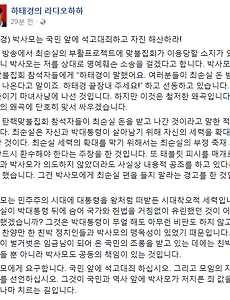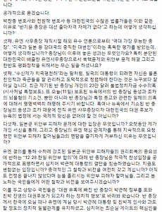 전체 글506 박정희 전 대통령 경제 성장에 대한 객관적인 자료 및 평가 박정희 전 대통령의 경제 실적에 대해 많은 논쟁이 있습니다. 아직도 박정희 전대통령이 우리나라 경제를 기적적으로 발전시켰다고 굳게 믿는 분들이 많은 반면, 그것은 착각이며 실제로는 그다지 큰 성장이 아니었고, 오히려 박정희 사후에 한국 경제가 본격적으로 성장했다는 주장을 하는 사람들도 있습니다. 저의 입장을 말하자면 저는 후자에 속하는데요, 저와 같은 입장, 즉, 한국 경제 성장에 박정희 전대통령이 기여하기는 했지만 박정희 대통령 재임 시절에 한국 경제가 그렇게 크게 성장한 것은 아니었다는 입장에 대한 근거가 되는 객관적 데이터를 제시한 분이 있어서 가져왔습니다. 어느 분이 작성했는지는 모르겠습니다. 저도 인터넷 게시판에서 다른 분이 퍼온 것을 보고 퍼왔습니다. 제가 본 자료 중에서 가장 객관적이고 설득.. 2017. 1. 23. 박근혜 대통령 변호인단의 서석구 변호사가 가짜 뉴스를 증거로 제시? JTBC의 뉴스 보도입니다. 요즘 가짜 뉴스들이 많아서 많은 주의가 필요한데요, 박근혜 대통령 변호인단의 서석구 변호사가 헌법 재판소에서 열린 탄핵 재판에서 가짜 뉴스를 증거로 제시했다고 합니다. 서석구 변호사가 제시한 가짜 뉴스는 북한의 로동신문 이미지를 포토샵으로 조작한 사진이라고 합니다. 서석구 변호사는 이 이미지를 촛불 시위가 북한의 사주로 기획되었다는 우파(극우파)의 주장을 뒷받침하기 위해 제시했다고 합니다. 이것이 사실이라면 신성한 재판정에서 변호사라는 사람이 가짜 증거를 내밀었으니 사법부 모독죄로 처벌해야 하는 거 아닌지 모르겠습니다. 그냥 넘어가서는 안될 엄중한 문제라고 생각되는데요. 서석구 변호사는 알고 그런 걸까요, 모르고 그런 걸까요? 알고 그랬다고 하면 더 심각하고, 몰랐다고 해도 .. 2017. 1. 22. 전직 대통령 호감도 변화 추이 - 노무현 1위 47.7%, 박정희 2위 25.9%, 김대중 3위 11.8%, 대망의 꼴찌는 누구? 2016년 12월 31일에 여론조사기관인 리서치뷰에서 전현직 대통령 호감도를 발표했는데요,순위는 아래와 같습니다. 편의상 존칭은 생략하겠습니다. 이번 조사에서는 노무현 전 대통령이 거의 50%에 가까운 47.7%를 기록하며 사상 최고치를 경신했습니다.그것도 2위인 박정희 전 대통령의 25.9%보다 거의 2배나 더 높습니다.탄핵 소추를 당한 박근혜는 1.6%로 최하위를 기록했습니다.노무현, 박정희, 김대중이 합계 83%로 3강, 김영삼, 이명박, 박근혜는 합쳐서 6.7%로 3약을 이루고 있습니다.이 두 그룹 간에 차이가 많이 납니다.자세한 순위와 호감도는 다음과 같습니다. 1위: 노무현 47.7% 2위: 박정희 25.9%3위: 김대중 11.8%4위: 김영삼 3.1%5위: 이명박 2.0%6위: 박근헤 1.6.. 2017. 1. 16. 반기문 대선 후보에 대한 각계의 평가 반기문 씨가 귀국한 이후로 반기문 씨의 행보에 대한 관심이 뜨겁네요.본격적으로 대선 후보 검증이 시작된 것 같습니다.반기문 씨를 며칠 지켜본 각계 전문가들이 여러가지 평들을 내놓고 있는데요....저의 관심을 끈 몇몇 분들의 평가를 한번 정리해 봤습니다. 1. 최성 고양 시장: "반기문 총장이 대통령 자격이 없는 5가지 이유" 가장 먼저 저의 관심을 끈 것은 최성 고양 시장의 반기문 씨 평가입니다.단도직입적으로 대통령 자격이 없다고 말하면서 다섯 가지 질문을 하셨습니다.저도 궁금합니다. 반기문 씨가 답변해 주시면 고맙겠습니다. 2. 노회찬 의원: "반기문은 이승만이 환생해서 박근혜, 이명박과 손잡은 형세" 노회찬 정의당 원내대표는 반 총장을 지지하는 세력이 친박계와 친이계가 반반이라고 비판했습니다. 노회찬.. 2017. 1. 16. 박사모는 국민 앞에 석고대죄하고 자진 해산하라! - 하태경 의원 하태경 의원이 홀로 박사모와 맞서 싸우고 있습니다.용기 있는 하태경 의원에게 박수를 보냅니다. 군대가 일어나야 한다면서 시대착오적인 쿠데타를 종용하고 있는 박사모는 해산해야 마땅합니다. 박사모에 쓴 소리 하는 정치인이 없는데 유일하게 하태경 의원이 정의로운 일을 하고 있습니다.다른 국회의원들도 동참해서 법을 무시하고 내란을 선동하고 있는 박사모를 꾸짖고 처벌해야 합니다.박사모는 지금 범죄 혐의가 만천하에 들어난 최순실과 정유라 편을 들고 그들을 비난하는 대다수 국민을 오히려 적으로 몰아세우고 있습니다.자신들을 애국 보수라고 떠드는 그들의 애국은 도대체 누구를 위한 애국이란 말입니까?그들은 박근혜를 지지하면 애국이고 반대하면 매국이고 빨갱이라는 어이없는 주장을 하고 있습니다.저는 하태경 의원을 잘 모르지만.. 2017. 1. 3. 박근혜 시대의 추억 (3): 근혜어를 창조하시다 박근혜 대통령이 경제 창조에는 소질이 없으셨지만,새로운 언어 창조에는 탁월한 능력을 발휘하시어, 요즘 청소년들의 외계어를 능가하는 근혜어를 창시하시었습니다. 공주님의 독특한 언어는 국민들에게 많은 즐거움을 주셨더랬습니다. "근혜어(근혜체)"가 세상에 알려지다그동안 그분의 최측근만이 알고 있었던 근혜어의 막강한 위력이 세상이 널리 알려지게 된 계기는 바로 박근혜 대통령의 다음과 같은 발언 때문이었습니다."우리의 핵심 목표는..."