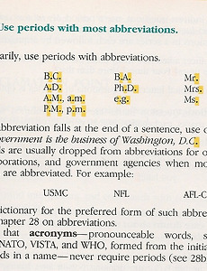 전체 글506 영어 약어를 쓸 때 마지막 점을 꼭, 반드시 찍읍시다 오래 전부터 알게 된 사실이 있습니다. 많은 한국인들이 영어 약어를 쓸 때 마지막 구두점을 찍지 않는다는 것입니다. 예를 들어 유명한 가수인 에쵸티와 지오디를 영어로 쓸 때, H.O.T / G.O.D라고 쓰고 마지막 글자 뒤에 구두점을 찍지 않는 경우가 많습니다. 영문법적으로 보면 분명히 이것은 오류입니다. The Little Brown Handbook이라는 유명한 영문법 책이 있는데 제가 학창시절에 보던 5판을 보면 다음과 같이 나와 있습니다. (저는 지금도 이 책을 갖고 있습니다. 올해는 12판이 출판될 계획인 것으로 압니다) (제가 직접 스캔한 이미지 입니다) 위 규칙을 요약하자면 다음과 같습니다. 1. 일반적으로 약어에는 구두점을 찍는다. 예: L.A., D.C., M.D. A.D., Ph.D.,.. 2011. 10. 8. 초보 블로거를 위한 10가지 팁 블로그를 시작하는 입장에서 무엇부터 시작해야 하는지, 어떻게 방문객을 늘릴 수 있는지, 막막하기만 합니다. 그래서 성공한 블로거가 초보들을 위해 남긴 글들을 읽고 그 분들이 가장 많이 말씀하시는 조언들을 요약해 보았습니다. (상당 부분은 블로그투잡 사이트 주인장의 조언입니다) 1. 자신만의 색깔을 가지고 자신이 가장 자신있는 블로그를 운영한다. 2. 하루에 글을 하나씩 쓴다. 실천하기가 쉽지 않을 것 같습니다. 그렇게 자주 쓸 글 소재가 있을까? 어쨌든 가장 기본적이면서도 중요한 팁입니다. 또 하루에 너무 많은 글을 쓰면 스팸으로 인식될 수 있으므로 하루에 하나가 가장 좋다는 것입니다. 3. 유익하고 일상적인 글을 써라. 4. 남의 글을 복사하지 말아라. 5. 댓글과 추천 등으로 이웃을 만들어라 6. 네.. 2011. 10. 8. 이전 1 ··· 40 41 42 43 다음